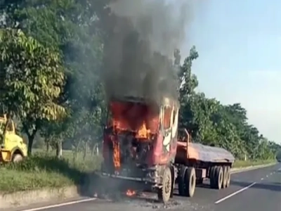 চট্টগ্রামে সীতাকুণ্ডে মোটরসাইকেলে এসে লরিতে আগুন