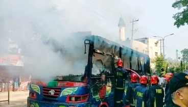 রাজধানীর নতুন বাজারে যাত্রীবাহী বাসে আগুন