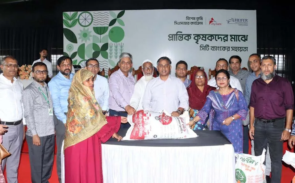 রাজশাহীতে কৃষকদের পোলট্রি ও মাছের খাবার বিতরণ সিটি ব্যাংকের