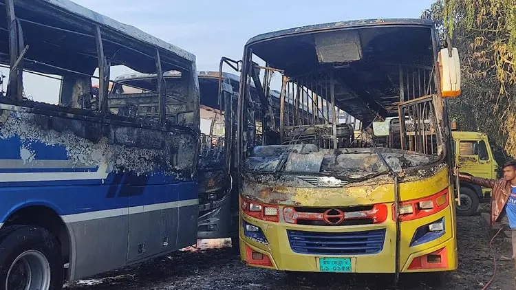নাটোরে ফিলিং স্টেশনে রাখা ৩টি যাত্রীবাহী বাসে আগুন দিয়েছে দুর্বৃত্তরা