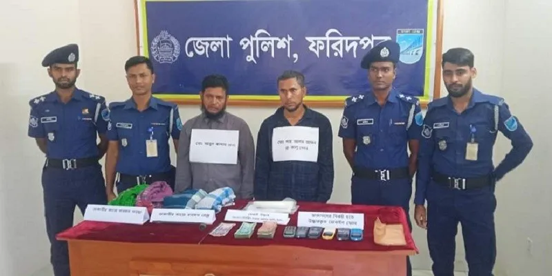 এক পর্যায়ে গাড়ীটি ভাঙ্গা থানার হামিরদী ইউনিয়নের মুনসুরাবাদ এলাকায় ঢাকা-খুলনা হাইওয়ে রোডে স্থাপনকৃত চেকপোষ্ট এর কাছে এসে চেকপোষ্টে কর্তব্যরত পুলিশের তৎপরতা দেখে গাড়ী থামিয়ে গাড়ী থেকে নেমে পালানোর চেষ্টাকালে কর্তব্যরত পুলিশ সদস্যরা ০২(দুই) জন ডাকাত দলের সদস্যদের গ্রেফতার করে। অন্যান্য আসামীরা অন্ধকারে পালিয়ে যায়।