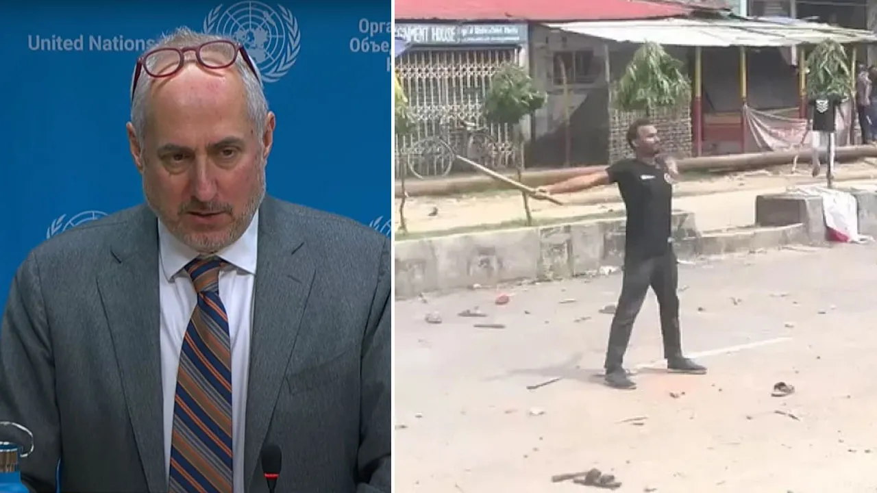 জবাবে জাতিসংঘ মহাসচিবের মুখপাত্র স্টিফেন ডুজারিক বলেন, হ্যাঁ। আমরা (বাংলাদেশে চলমান) পরিস্থিতি সম্পর্কে খুব ভালো ভাবে অবগত আছি। আমরা ঘনিষ্ঠভাবে এবং উদ্বেগের সাথে পরিস্থিতির ওপর নজর রাখছি।