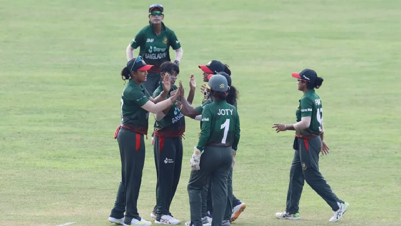 বল হাতে পাকিস্তান শিবিরে প্রথম আঘাত করেন নাহিদা সুলতানা। ওপেনার সিদরা আমিনকে সরাসরি বোল্ড করেন তিনি। পাওয়ারপ্লের শেষ ওভারে আবারও আঘাত করেন নাহিদা। এবার দারুণ খেলতে থাকা মুনিবা আলীকে সাজঘরে পাঠান তিনি। এরপরেই দলের হাল ধরেন অধিনায়ক নিদা দার এবং অভিজ্ঞ বিসমাহ মারুফ। দুজনের জুটিতে ভর করে ৫০ পার করে পাকিস্তান।