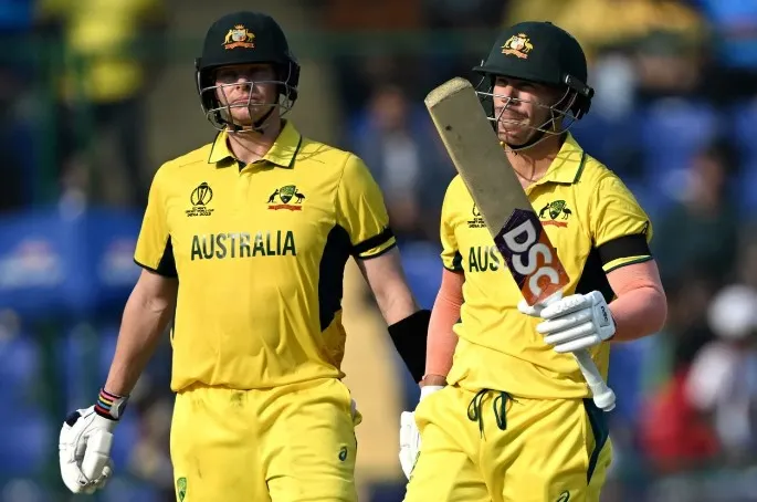দিল্লিতে টস জিতে প্রথমে ব্যাটিং করার সিদ্বান্ত নেয় অস্ট্রেলিয়া। এবার দলকে ভালো সূচনা এনে দিতে পারেননি আগের ম্যাচে পাকিস্তানের বিপক্ষে উদ্বোধনী জুটিতে ২৫৯ রান করা ওয়ার্নার ও মিচেল মার্শ। চতুর্থ ওভারে দলীয় ২৮ রানে বিদায় নেন মার্শ। পাকিস্তানের বিপক্ষে ১২১ রান করা এ ব্যাটার আজ থামেন ৯ রানে ।দ্বিতীয় উইকেটে স্টিভেন স্মিথের সাথে শতরানের জুটি গড়েন ওয়ার্নার। ৯টি চার ও ১টি ছক্কায় ৬৮ বলে ৭১ রান করে ২৪তম ওভারে ফিরেন স্মিথ। ওয়ার্নারের সাথে ১১৮ বলে ১৩২ রান যোগ করেন স্মিথ।