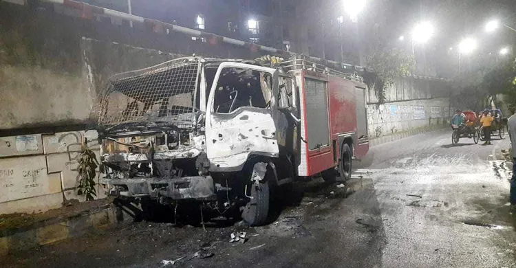 ফায়ার সার্ভিসের যে গাড়ি বাসে আগুন নেভাতে গিয়েছিল সেই গাড়িতেই আগুন