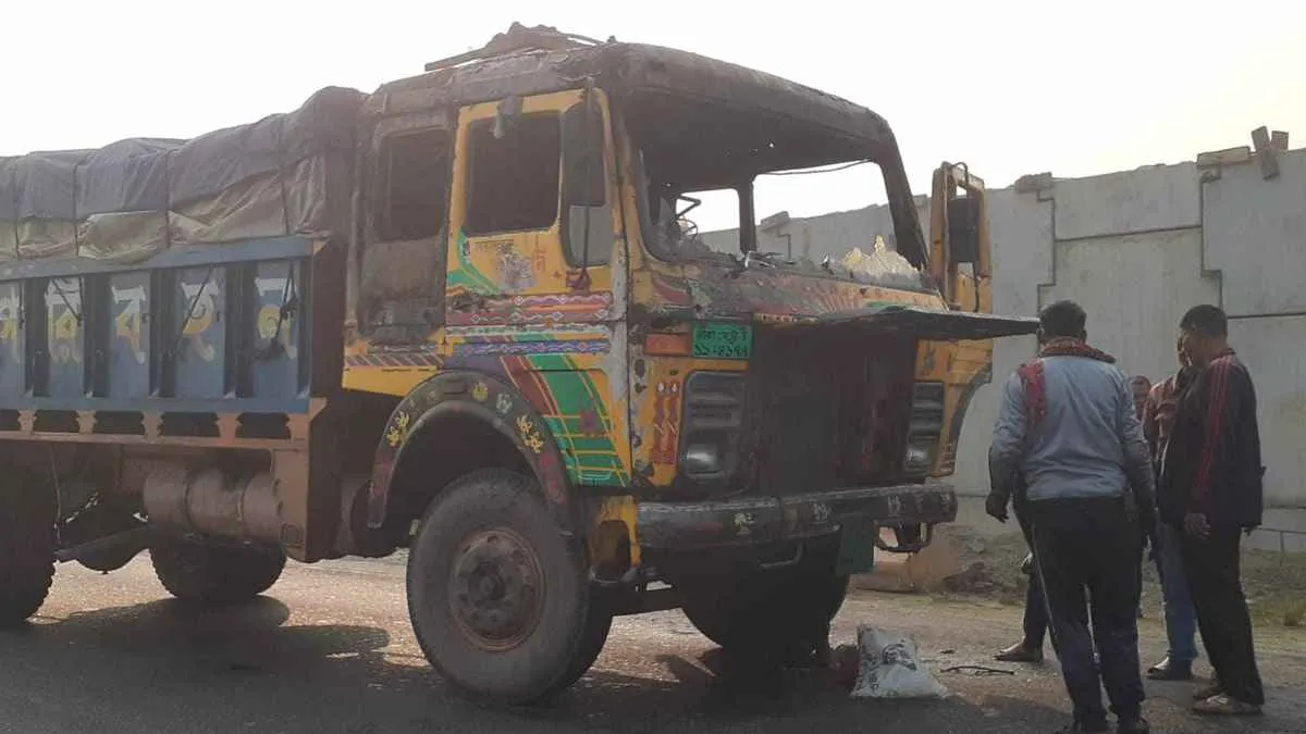 সিরাজগঞ্জে মহাসড়কে ট্রাকে আগুন