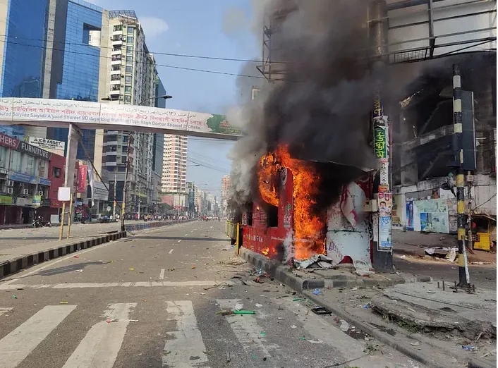 কাকরাইলে পুলিশ বক্স ও গাড়িতে আগুন, মসজিদের সামনে বিজিবি