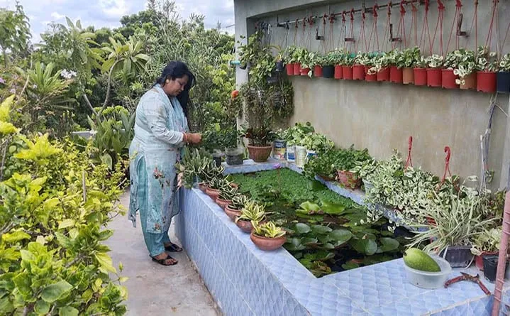 শহরের আলাদাৎপুর এলাকার একটি ছাদ বাগানের রুমানা পারভীন কেয়া বলেন, তনিমার ছাদ বাগান দেখে ভোলো লাগে ।