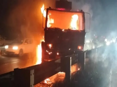 কালিয়াকৈর চলন্ত ট্রাকে আগুন : চালক দগ্ধ
