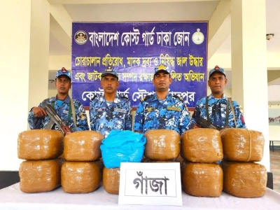 চাঁদপুরে ৬৭ কেজি গাজা উদ্ধার করেছে বাংলাদেশ কোস্ট গার্ড
