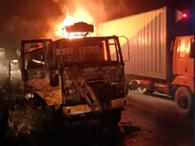 সিরাজগঞ্জে মহাসড়কে ট্রাকে আগুন