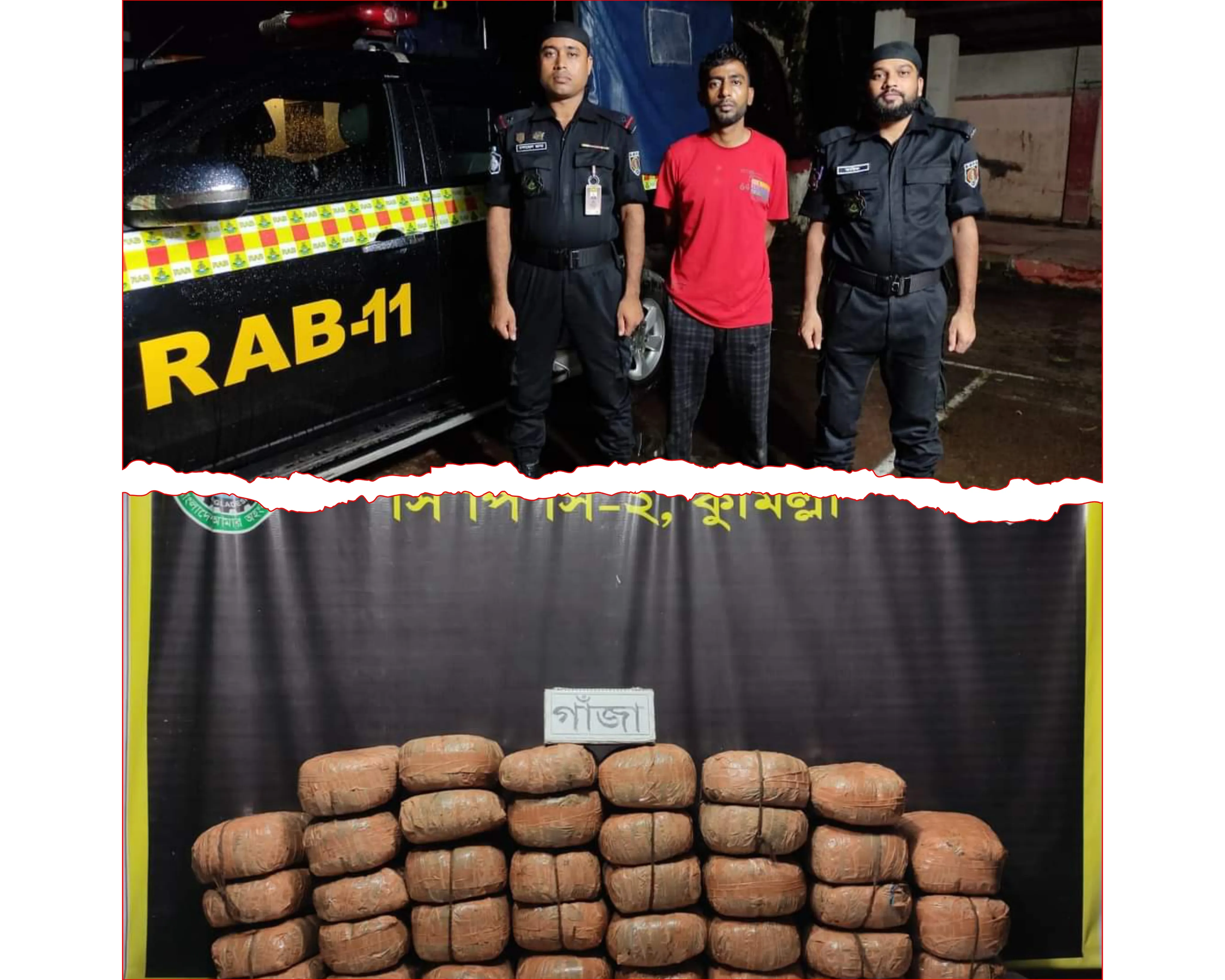 নিয়মিত টহলের অংশ হিসাবে গোপন সংবাদের ভিত্তিতে র্যাব-১১, সিপিসি-২ এর একটি আভিযানিক দল গত ১৮ সেপ্টেম্বর ২০২৩ইং তারিখ রাতে কুমিল্লা জেলার কোতয়ালী মডেল থানাধীন নোয়াপাড়া এলাকায় বিশেষ অভিযান পরিচালনা করে। উক্ত অভিযানে ৭৬ কেজি গাঁজা’সহ একজন মাদক ব্যবসায়ীকে গ্রেফতার করা হয়। গ্রেফতারকৃত মাদক ব্যবসায়ী হলোঃ কুমিল্লা জেলার সদর দক্ষিণ মডেল থানার উত্তর সূর্যনগর গ্রামের মোঃ শহীদ মিয়া এর ছেলে মোঃ মাসুদ মিয়া (৩২)।