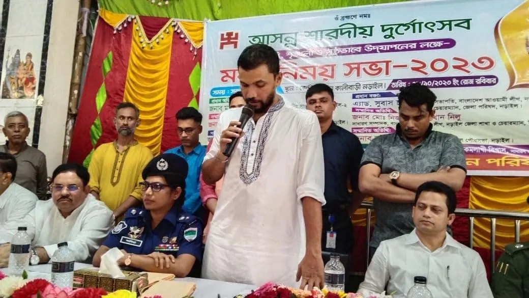 তিনি (মাশরাফী) নড়াইল-২ সংসদীয় আসনের সব মন্ডপে সিসিটিভির ব্যবস্থা করে দিবেন বলেও জানান ।জেলা পূজা উদযাপন কমিটির সভাপতি অশোক কুমার কুন্ডুর সভাপতিত্বে এ মতবিনিময় সভায় বক্তব্য রাখেন জেলা প্রশাসক মোহাম্মদ আশফাকুল হক চৌধুরী, পুলিশ সুপার সাদিরা খাতুন, জেলা আওয়ামী লীগের সভাপতি ও জেলা পরিষদের চেয়ারম্যান অ্যাডভোকেট সুবাস চন্দ্র বোস, জেলা আওয়ামী লীগের সাধারণ সম্পাদক ও সদর উপজেলা চেয়ারম্যান নিজাম উদ্দিন খান নিলু, পৌর মেয়র আঞ্জুমান আরা।এ সময় বিভিন্ন পূজা মন্ডপ কমিটির নেতৃবৃন্দ উপস্থিত ছিলেন।
