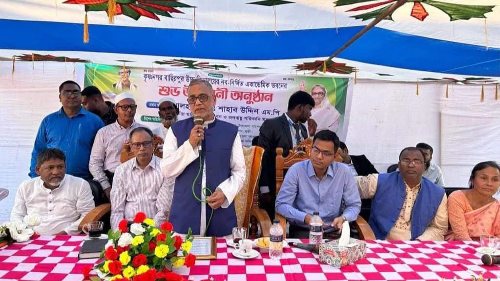 রোববার (১২ নভেম্বর) মৌলভীবাজারের জুড়ী উপজেলার কৃষ্ণনগর বাছিরপুর উচ্চ বিদ্যালয়ের নবনির্মিত চারতলা ভিতবিশিষ্ট একতলা একাডেমিক ভবনের উদ্বোধনী অনুষ্ঠানে প্রধান অতিথির বক্তব্যে এসব কথা বলেন পরিবেশ, বন ও জলবায়ু পরিবর্তনমন্ত্রী মো. শাহাব উদ্দিন এমপি।