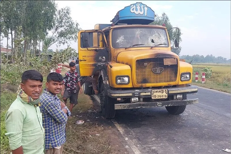 জয়পুরহাটে পাথরবোঝাই ট্রাকে আগুন