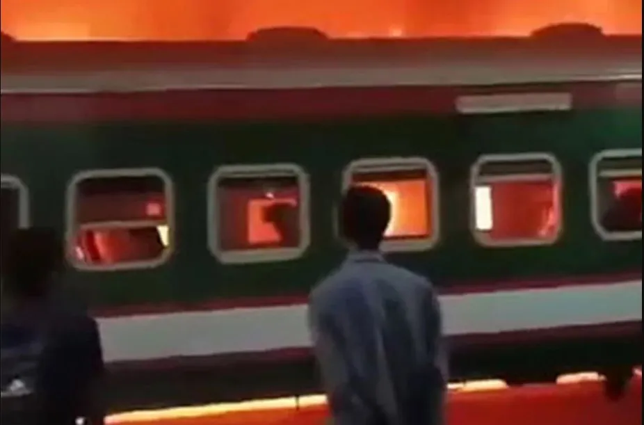 টাঙ্গাইলে দাঁড়িয়ে থাকা ট্রেনে আগুন