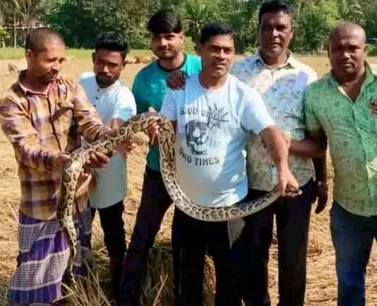 মৌলভীবাজারের শ্রীমঙ্গলে ধান খেত থেকে ১০ ফুট লম্বা একটি অজগর সাপ উদ্ধার করেছে বন্যপ্রাণী সেবা ফাউন্ডেশন।