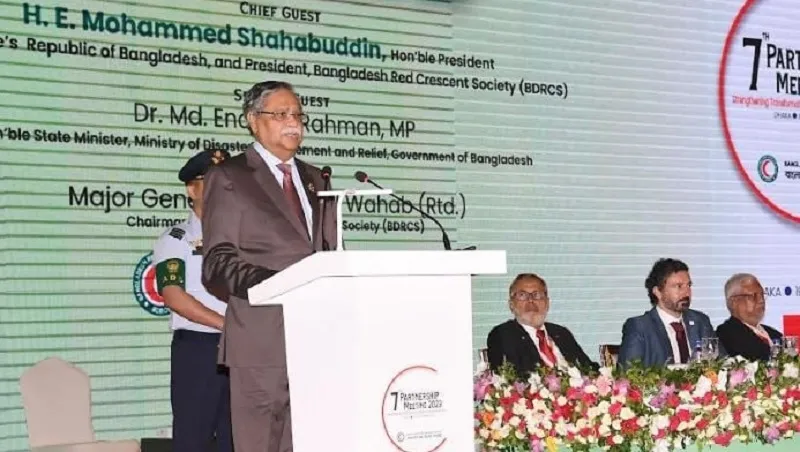 রাষ্ট্রপতি মো. সাহাবুদ্দিন রোহিঙ্গা সমস্যা সমাধানের জন্য জরুরিভাবে কাজ করতে বিশ্ব সম্প্রদায়ের প্রতি তাঁর আহ্বান পুনর্ব্যক্ত করেছেন। তিনি আজ মঙ্গলবার (১৯ সেপ্টেম্বর) নগরীর একটি হোটেলে বাংলাদেশ রেড ক্রিসেন্ট সোসাইটি (বিডিআরসিএস) এর ৭তম অংশীদারিত্ব সভা-২০২৩ উদ্বোধনকালে তাঁর এ আহ্বান পুনর্ব্যক্ত করেন।
