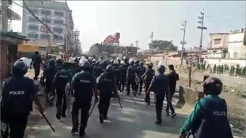 গাজীপুরে শ্রমিক-পুলিশ সংঘর্ষ, টিয়ারশেল নিক্ষেপ