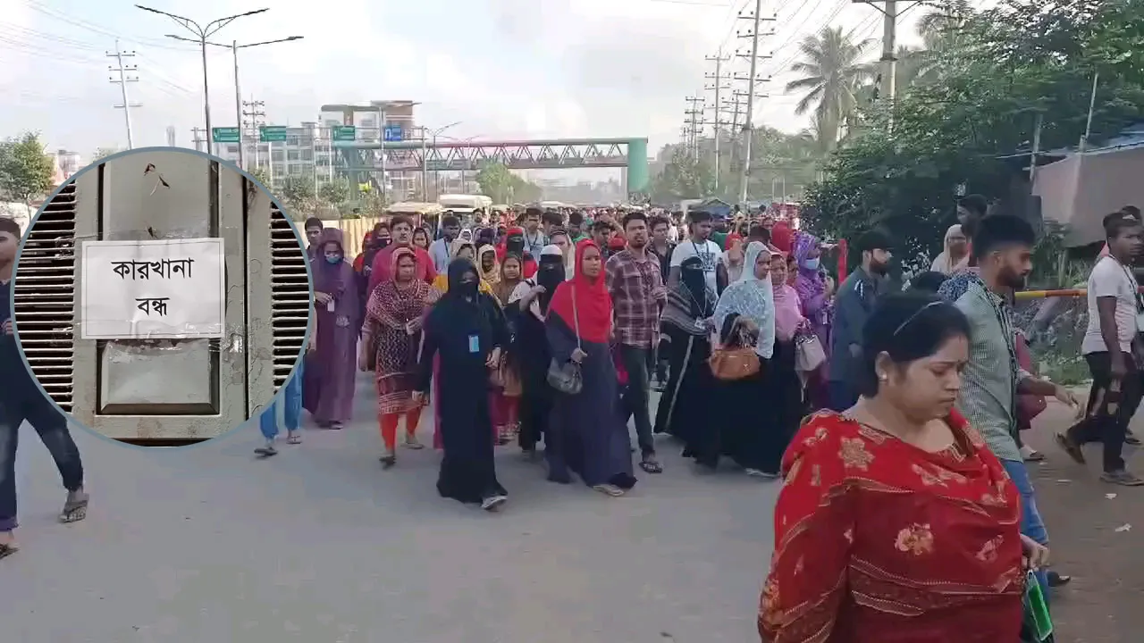 জানা গেছে, আশুলিয়া-ডিইপিজেড-আব্দুল্লাহপুর সড়কের নরসিংহপুর এলাকায় হা-মীম ও শারমিন নামে বড় দুইটি পোশাক কারখানা সাধারণ ছুটি ঘোষণা করে। পরে ওই এলাকার নিউ এইজ, নাসা, আল মুসলিম, জেনারেশন নেক্সটসহ ৭৯ পোশাক কারখানা বন্ধ ঘোষণা করা হয়।