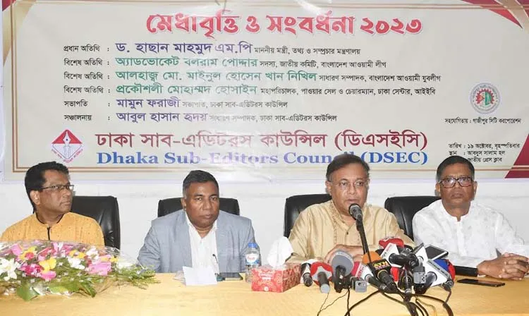 আজ বৃহস্পতিবার জাতীয় প্রেসক্লাবে ঢাকা সাব-এডিটরস কাউন্সিল সদস্যদের সন্তানদের মেধাবৃত্তি ও সম্বর্ধনা অনুষ্ঠানে প্রধান অতিথির বক্তৃতায় সমসাময়িক রাজনীতি প্রসঙ্গে তিনি এসব কথা বলেন। ঢাকা সাব-এডিটরস কাউন্সিলের সভাপতি মামুন ফরাজীর সভাপতিত্বে ও সাধারণ সম্পাদক আবুল হাসান হৃদয়ের সঞ্চালনায় আওয়ামী লীগের জাতীয় কমিটির সদস্য এডভোকেট বলরাম পোদ্দার এবং পাওয়ার সেলের মহাপরিচালক প্রকৌশলী মোহাম্মদ হোসাইন বিশেষ অতিথির বক্তব্য রাখেন।
